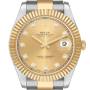 Replica Rolex Datejust II 41 Staal Geel Goud Diamant Herenhorloges 116333. Officieel gecertificeerd chronometer automatisch uurwerk. Oyster kast van roestvrij staal en 18K geel goud, 41,0 mm in diameter. Rolex-logo op de 18K geel gouden kroon. 18K geel gouden geribbelde lunette. Krasbestendig saffierglas met een cyclops-lens. Champagne wijzerplaat met originele Rolex-fabrieksdiamanten uurmarkeringen en geel gouden baton-wijzers. Datumaanduiding op de 3-uur positie. Oyster-armband van roestvrij staal en 18K geel goud met een Oysterlock-sluiting. Past een pols van 7 1/2".