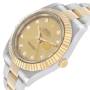 Wijzerplaat: Champagne wijzerplaat met originele Rolex-fabrieksdiamanten uurmarkeringen en geel gouden baton-wijzers. Datumaanduiding op de 3-uur positie.