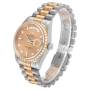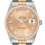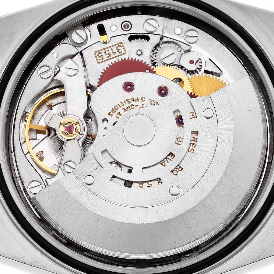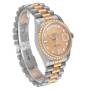 Wijzerplaat: Champagne wijzerplaat met originele Rolex-fabrieksdiamanten uurmarkeringen. Centrale secondewijzer. Buitenste minuten- en 1/2-seconden verdelingen, dagvenster bij 12 uur, datumvenster bij 3 uur.